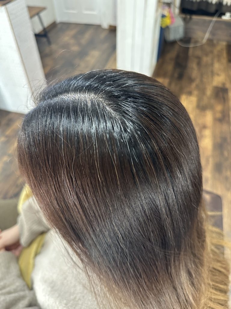 ここに細かく細くハイライトを入れて白髪の仲間を増やすイメージです。
